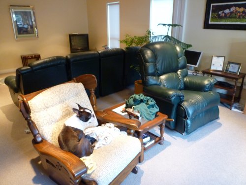 | The finished product --- Elsie's side of the new "Study" | My side of the Study. Notice the large Lazyboy recliner. I don't have to go upstairs if I want a short nap of an afternoon. |