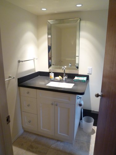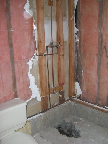 | Of course the old panel was too limited so a new one was installed. | The old downstairs bathroom --- I built this in 1985 with my own two hands. It still worked well, but it was not up to Elsie's standards. |
