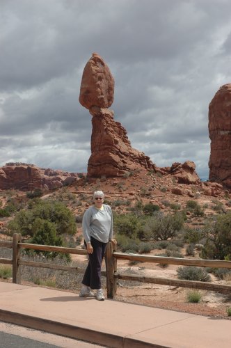 Elsie is pointing to the Balanced Rock |