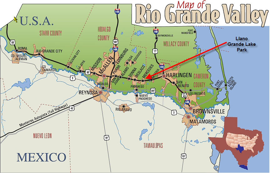 The whole Rio Grande Valley (RGV) fills up in January and February so we had a little problem finding a campground for a month. We were lucky and found a spot in the newer section of Llano Grande Lake Park Resort and County Club in Mercedes. (the double Ll is pronounced "y")